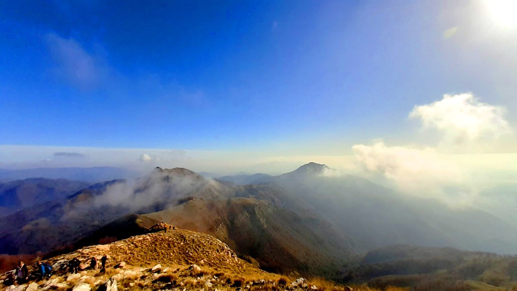 A questo punto, bisogna girare a sinistra e camminare lungo il crinale della montagna per arrivare sulla cima del Monte Matanna. Da ora in avanti i panorami diventano sempre più grandiosi dopo ogni passo: fare trekking lungo il crinale di una montagna è sempre un’emozione unica!