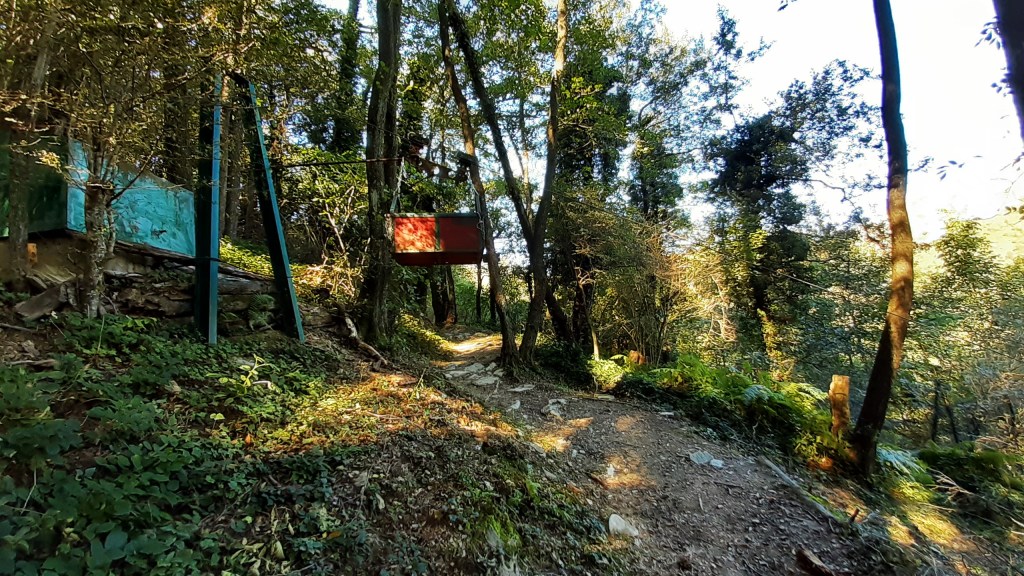 Poco dopo, il sentiero è improvvisamente attraversato da una teleferica, che sale lungo la dorsale della montagna. Non è qualcosa che si vede tutti i giorni!