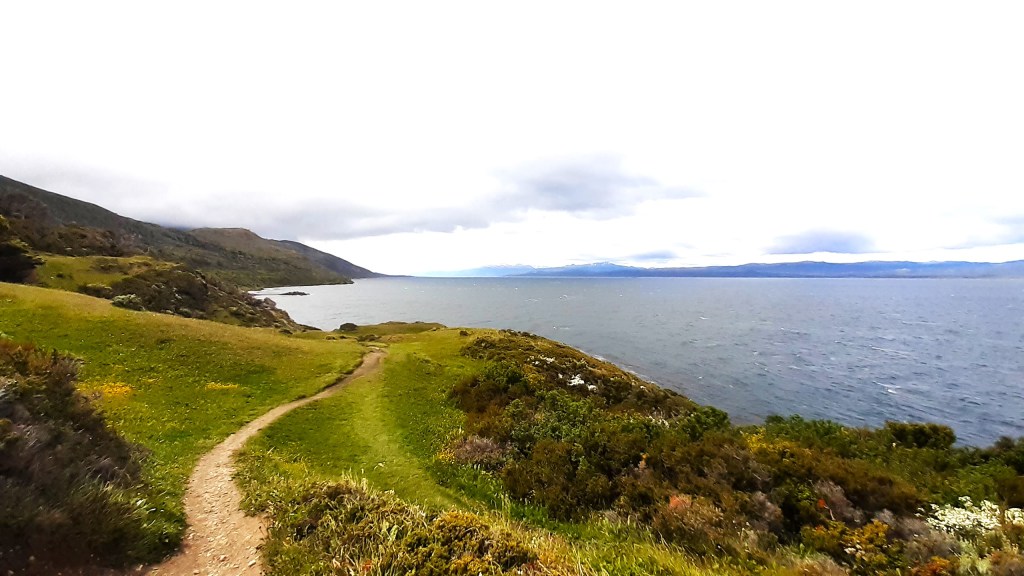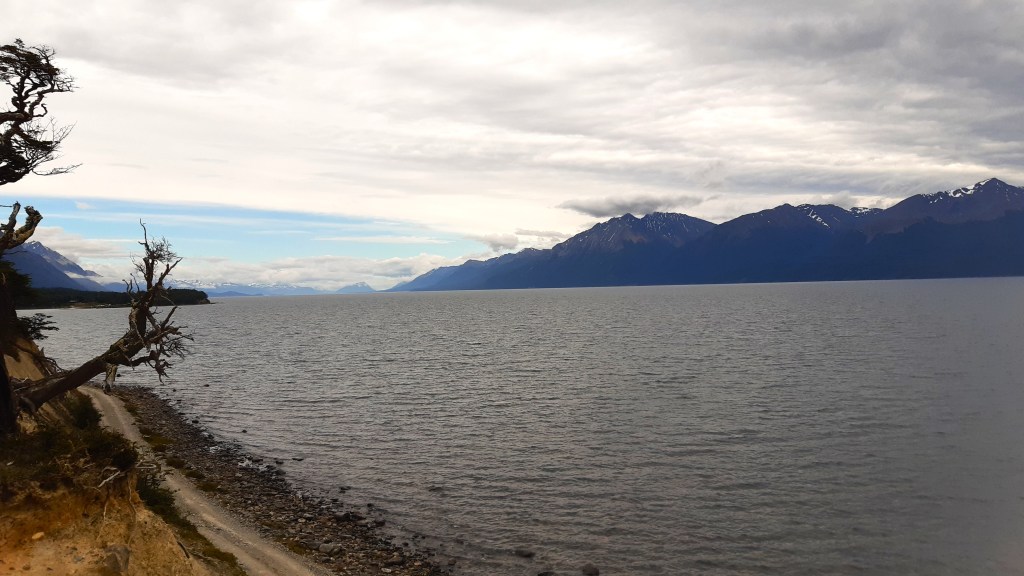 La fermata successiva è Ensenada Zaratiegui, che è dove sono sceso. Da qui ho seguito il sentiero Senda Costera, che segue la costa attraverso una foresta di Nothofagus. Il sentiero è lungo 8 km e conduce al Centro Visitatori Alakush (Centro de Visitantes del Parque Nacional Tierra del Fuego). Qui si trovano un ristorante, servizi igienici, un museo e un negozio di souvenir. Dal Centro Visitatori si gode di una bellissima vista sul lago Acigami (noto anche come Lago Roca).